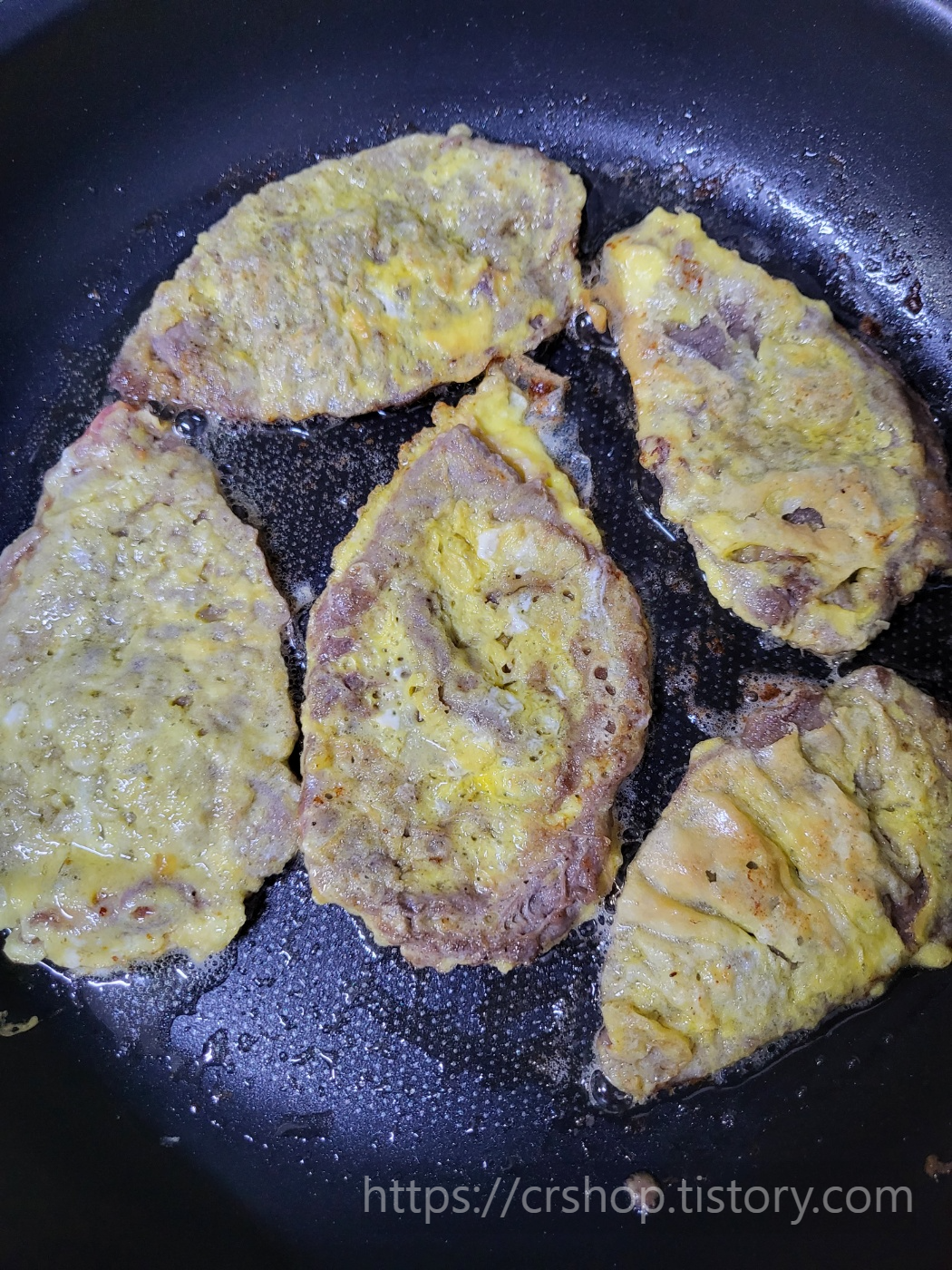 후라이팬에 기름 넉넉히 두르고 익혀주면 육전도 끝!